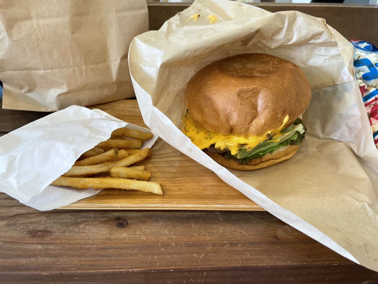 チーズバーガー&クリスピーポテトセット(906円)です!