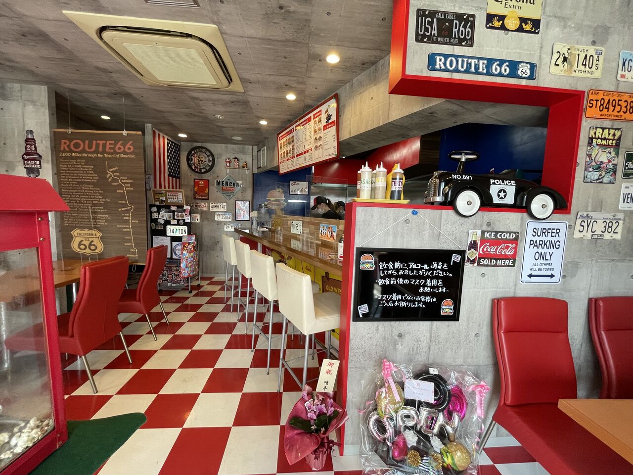 お店の名前の通り、アメリカンでポップな店内。