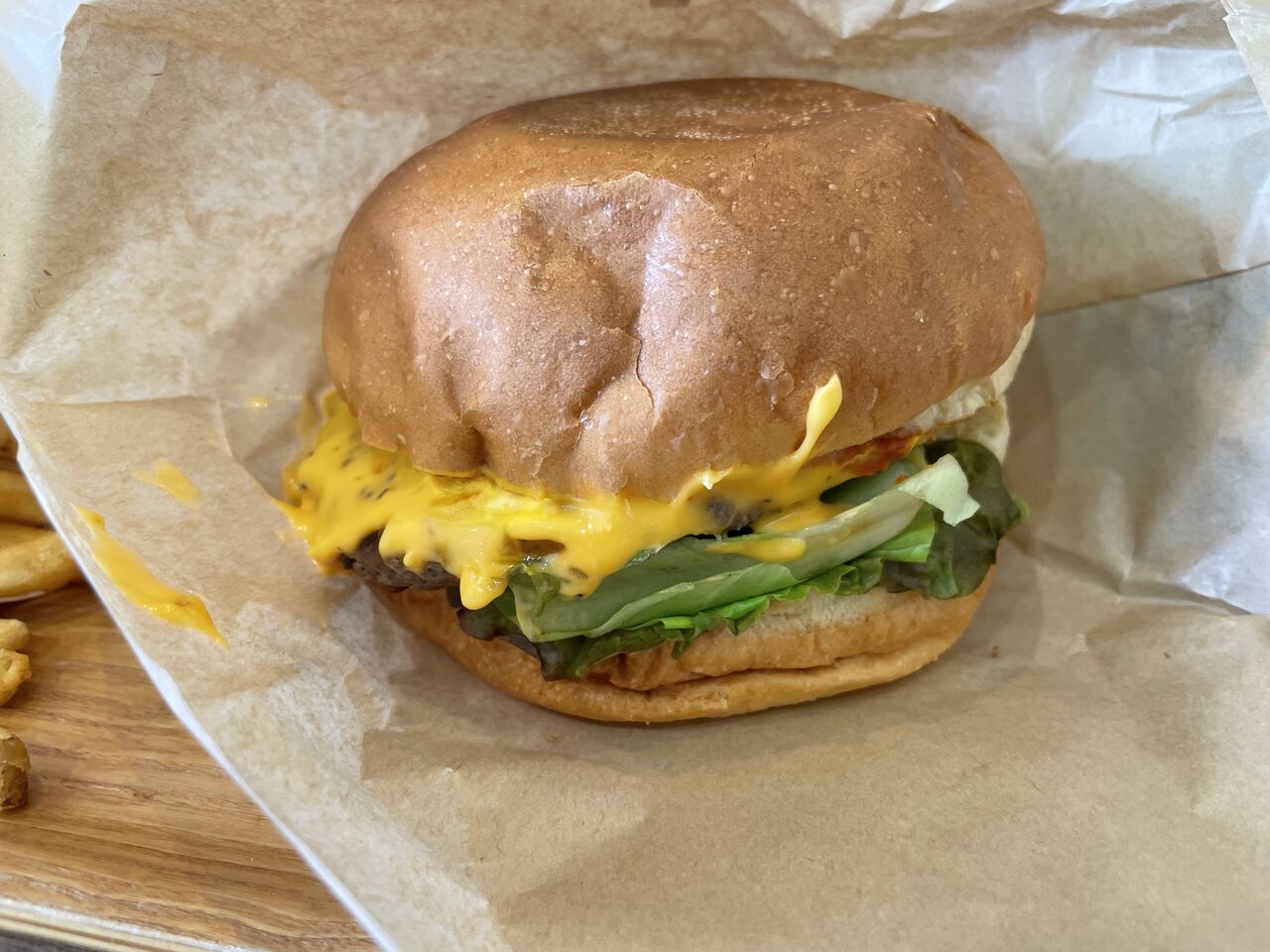 チーズバーガーのチーズはとろけだすぐらいボリューミーに入っています。