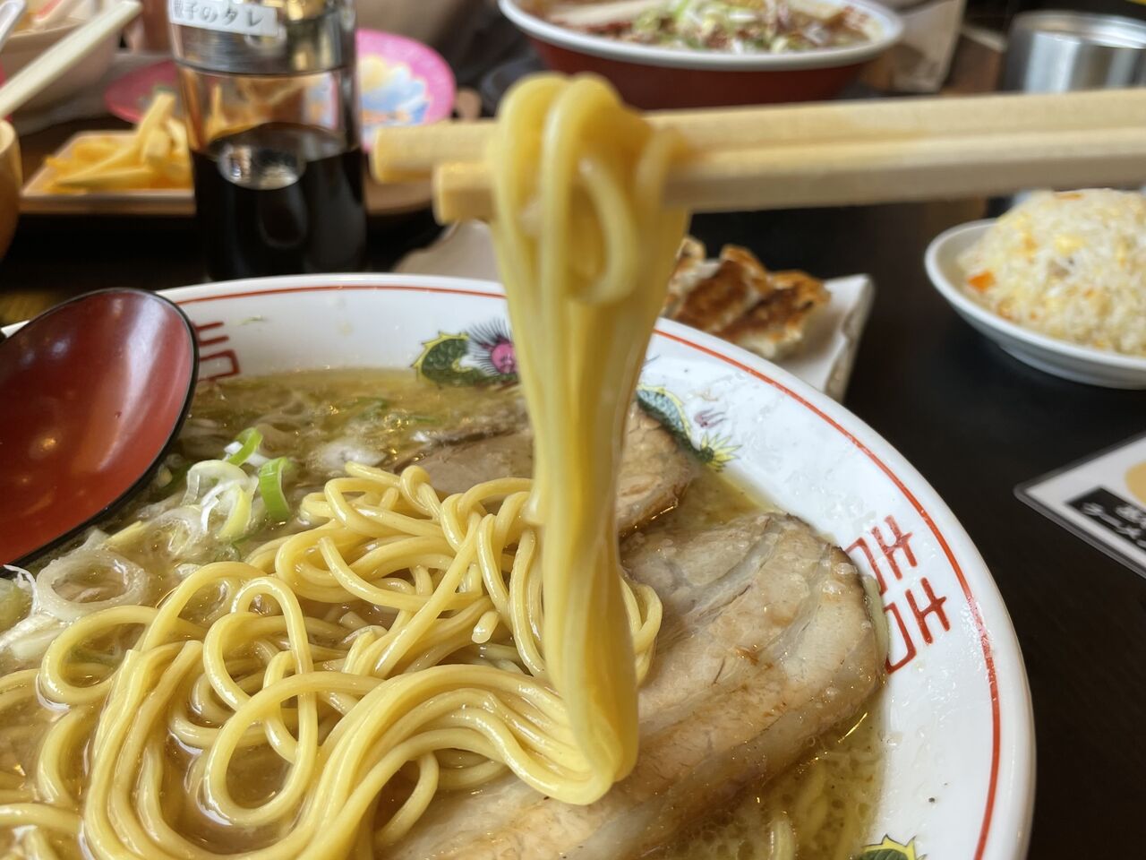 スープは背脂しっかり豚骨ベース醤油味スープで