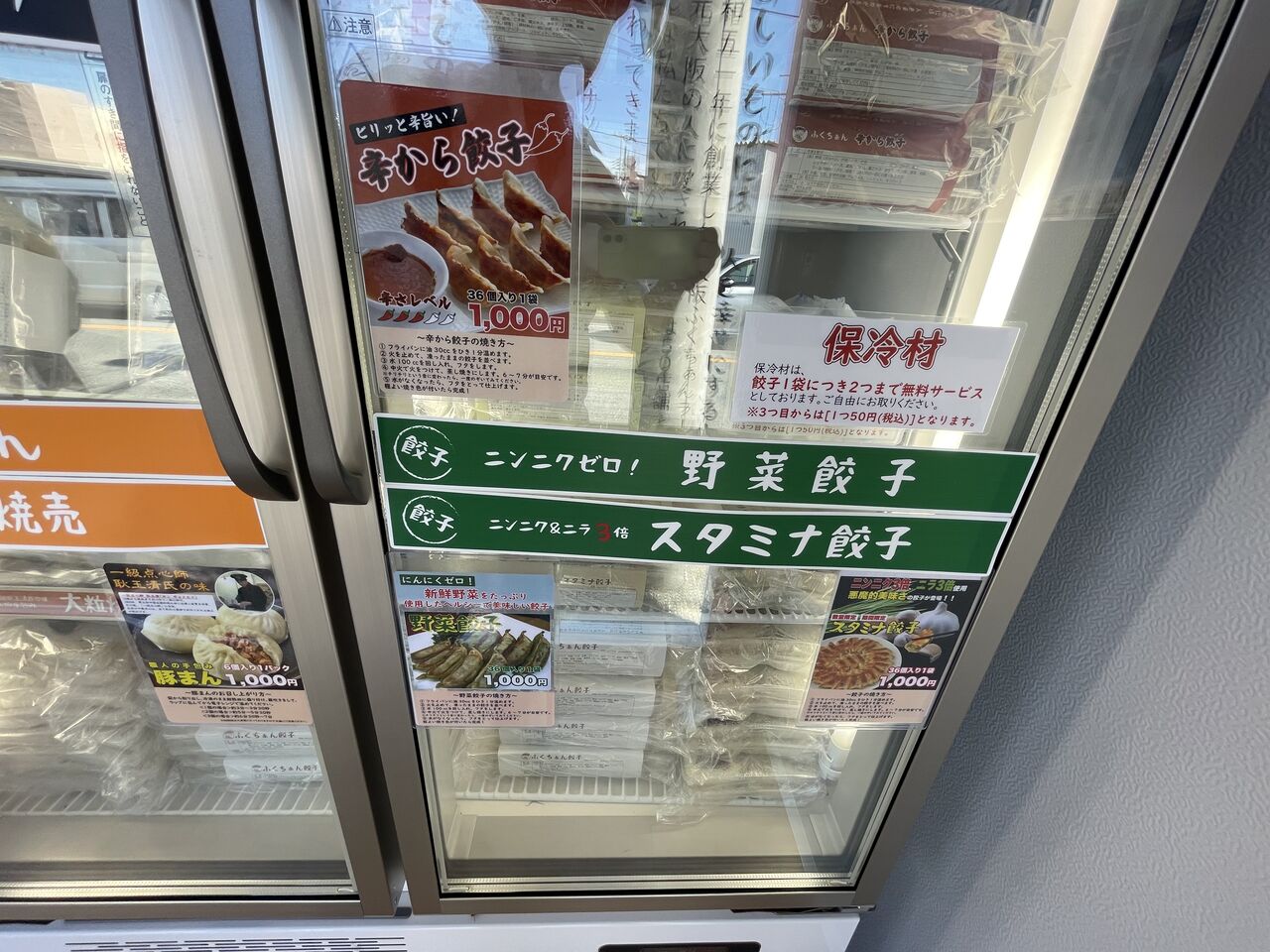 冷凍庫に生餃子が並べてありますので、
